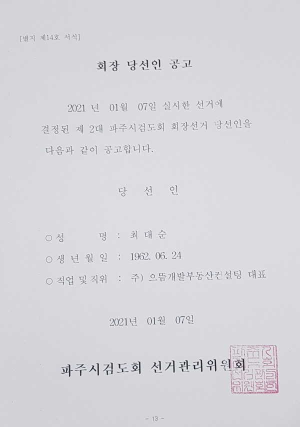 검도회 파주시검도회 회장 당선인 공고 페이지 정보 작성자 우종성 댓글 0건 조회 3,833회 작성일 21-01-07 18:06 본문 파주시검도회 회장 당선인 공고 검색 목록 이전글제2회 파주시장배 생활체육 검도대회 9.2. 월롱100주년기념체육관 23.09.04 다음글파주시검도회 회장선거 일정 공고 20.12.22 댓글목록 댓글목록 등록된 댓글이 없습니다.