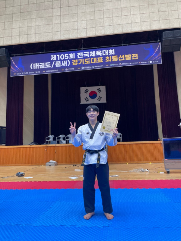 경희대한결태권도 이진호군이 제105회 전국체육대회 태권도 품새 경기도대표선발전 및 2024 홍콩세계태권도품새선수권대회 최종 국가대표선발전, 제59회 대통령기 전국단체대항태권도대회(품새)에서 우수한 성적을 거두었습니다. 제105회 전국체육대회에서 최초 정식종목으로 채택된 태권도 품새 종목에서 이진호군이 대학부 자유품새부문 경기도 대표로 선발 되었습니다. 제105회 전국체육대회 (태권도/품새) 경기도대표선발전 대학부 자유품새부문 1위