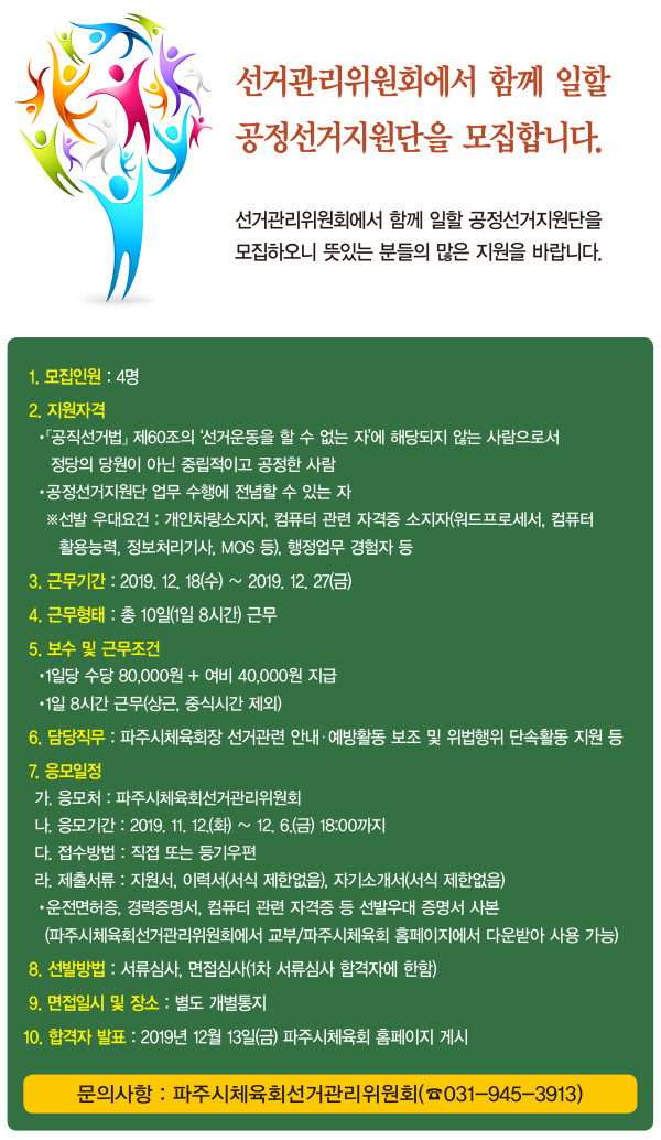 파주시체육회장 선거와 관련하여 공정선거지원단을 모집합니다.